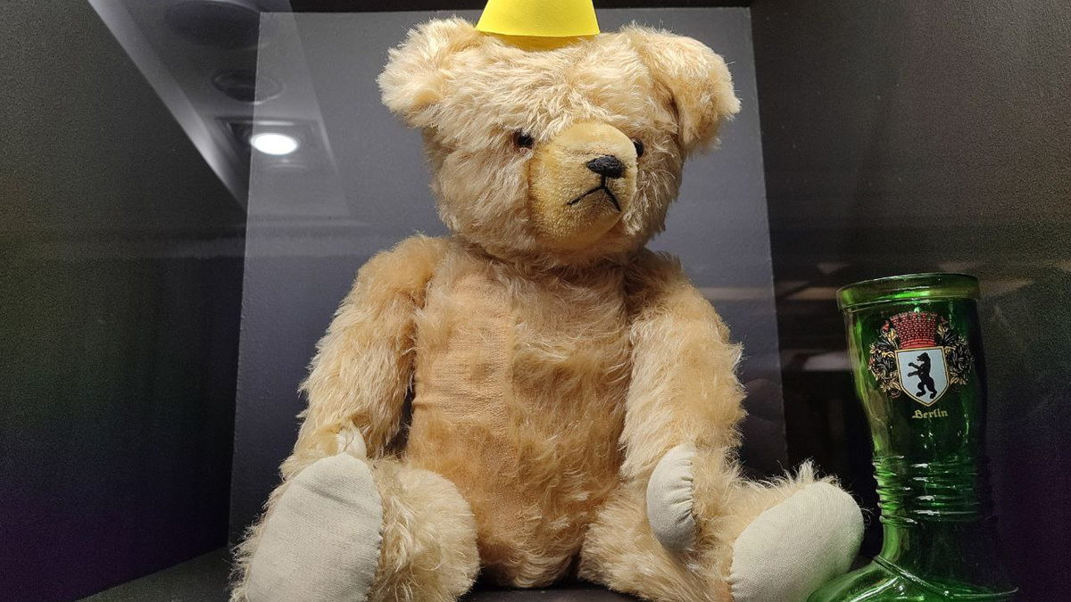 Другой немецкий медведь одет по форме 20-х годов прошлого века, на нем костюмчик и очки — так одевались банковские клерки. Когда его заваливают набок, он издает приветственный рык.