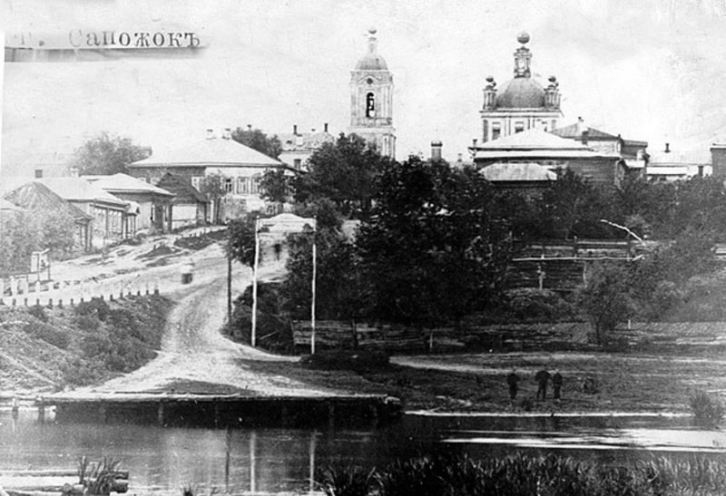 Собор Успения Пресвятой Богородицы был основан одновременно с самим Сапожком в начале XVII века, горел и был возведен заново: сначала из дерева, а потом в камне. Закрыли собор не позже 1930-го, а в начале 50-х и вовсе снесли.