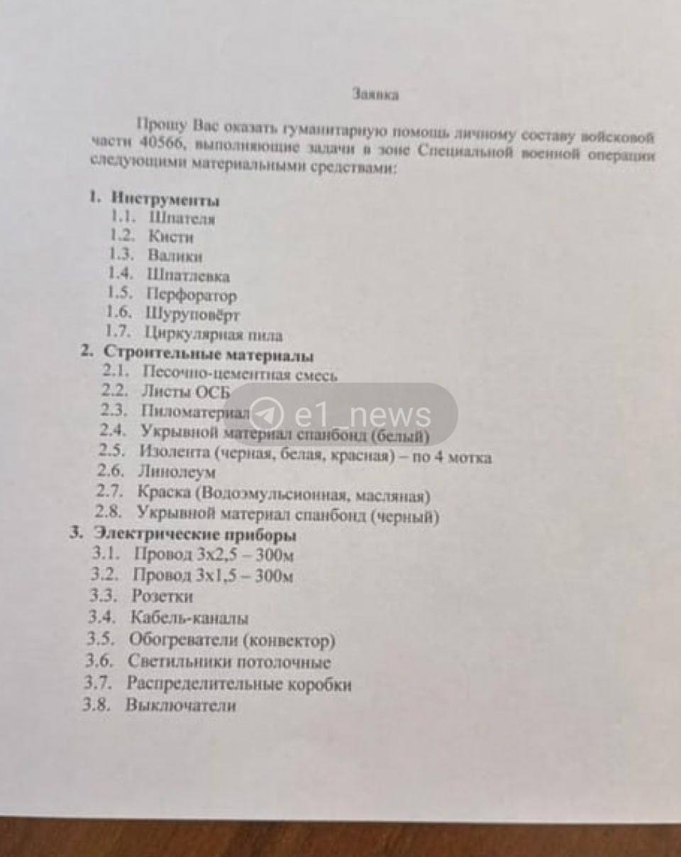 «В письме указаны материалы, которые необходимы для бойцов, — ответили в администрации. — Список — это крик души командира воинской части, которая находится в Чкаловском районе, все материалы будут направлены в зону СВО. Никого не заставляют сдавать что-то, это добровольное мероприятие. Мы ни от чего не отказываемся».