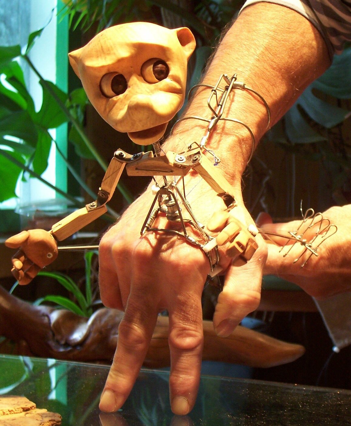 Ещё интереснее — куклы Захарова, его авторское изобретение. Уникальные и не имеющие аналогов, принципиально новые марионетки на запястье с полной механикой оживления.
