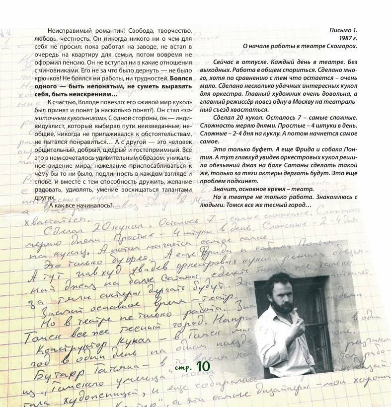 «Работа над этой книгой началась ещё тогда, когда я брала интервью для своей первой книги о творческих людях — это был рубеж тысячелетий. Тогда мы с Владимиром много общались. Когда он начал строить театр и ставить спектакли, общаться стали поменьше, но я продолжала следить за его работой. После его смерти я взялась за сбор материала для книги уже серьёзно. Это было два года спустя. Почему не сразу? Потому что я понимала, что людям больно, их не стоит тревожить».