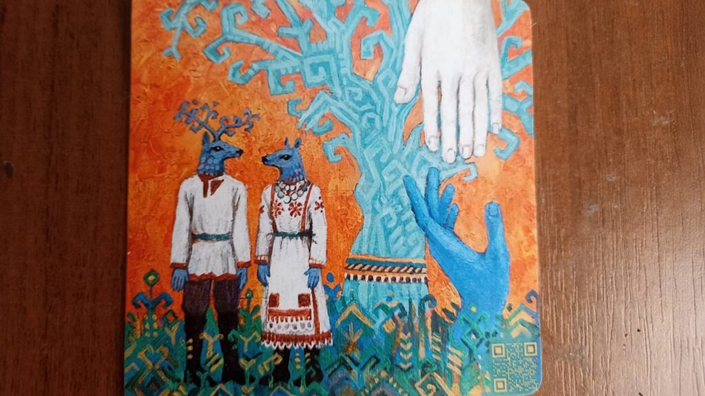 — Я родилась в городе Канаш, в 80 километрах от Чебоксар. В детстве особой связи с чувашской культурой не чувствовала. Родители между собой говорили на чувашском, а со мной только на русском. В школе, на уроках родного языка, меня отсаживали на заднюю парту: ты хорошо рисуешь, вот и рисуй для нас плакаты, — делится художница. — Все изменилось, когда я переехала в Чебоксары и поступила в художественное училище. Я поселилась в студенческом общежитии, только не в художественном, а в музыкальном, познакомилась с ребятами с сольно-хорового отделения, которые интересовались чувашской культурой. До этого я рисовала в основном портреты, но лучше всего у меня получались почему-то именно чуваши. После знакомства с этноактивистами стала интересоваться языком и культурой, создавать работы на основе национальной мифологии.
