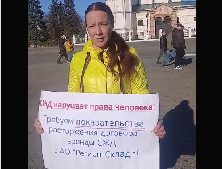 «Требуем доказательства расторжения договора аренды СЖД с АО „Регион-склад“!», — плакат с такой надписью держала в руках Эхова.