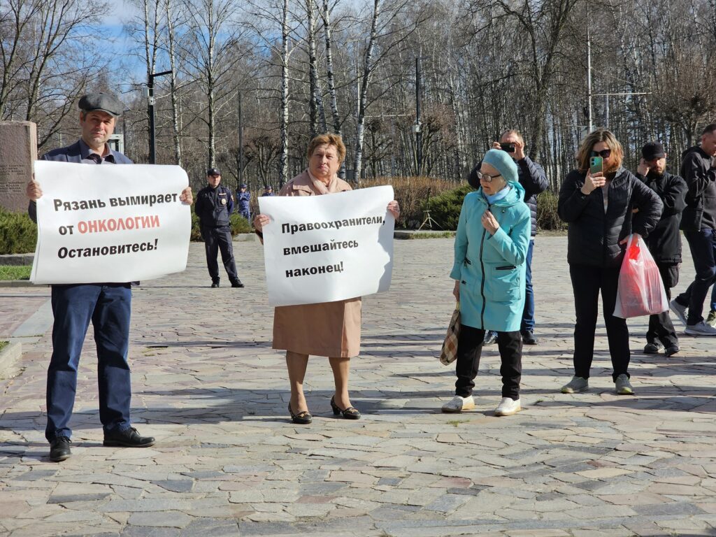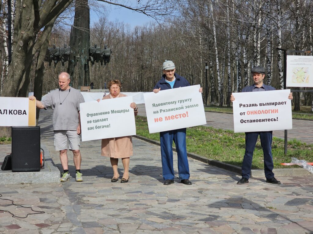 Участники держали плакаты: «Отравление Мещеры не сделает вас богаче!», «Рязань вымирает от онкологии. Остановитесь!», «Требуем вывезти отходы из Дубровичей!», «Нет экоциду!», «Ядовитому грунту на рязанской земле не место!». Активистка чуть поодаль стояла с плакатом: «Правоохранители, вмешайтесь, наконец!». Правоохранители со скучающими лицами никак не реагировали.