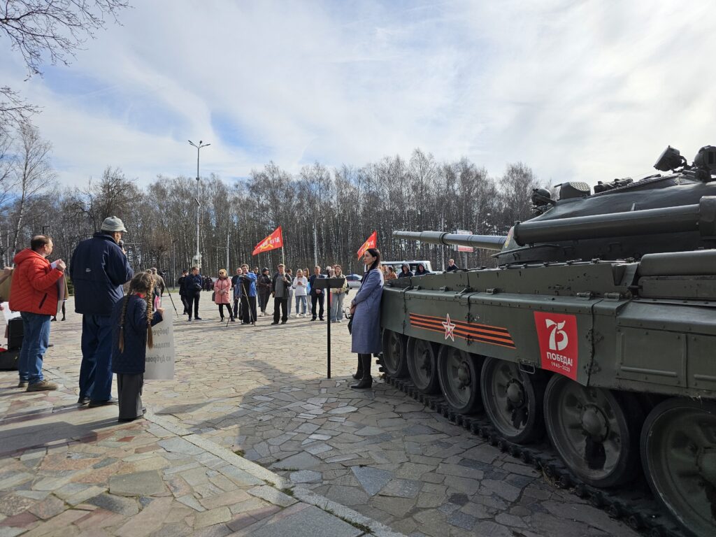 Парк представляет собой зеленую зону с деревьями и дорожками, вдоль которых стоит военная техника — от танков до минометов и гаубиц. Их установили к 75-летию Победы. Вместе с танками в парк пришло освещение, о котором жители микрорайона просили без малого 20 лет.