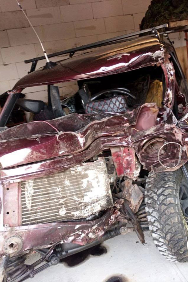 Агроном Константин Лопаткин и его «Нива» сразу после аварии. Источник фото: личный архив, «Пепел» (фото предоставлено очевидцами)