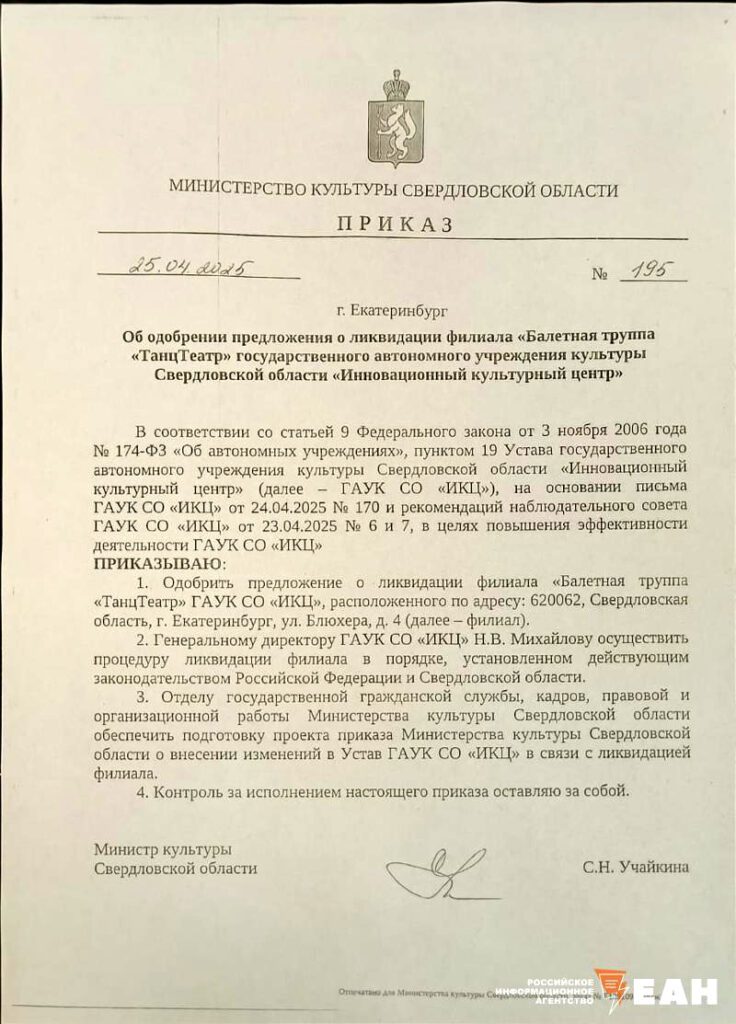 В Екатеринбурге ликвидируют «ТанцТеатр»: причины артистам официально не озвучили