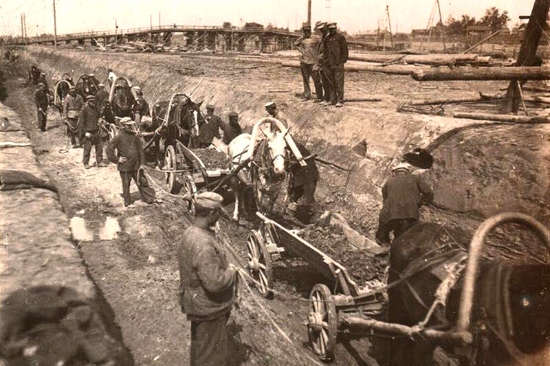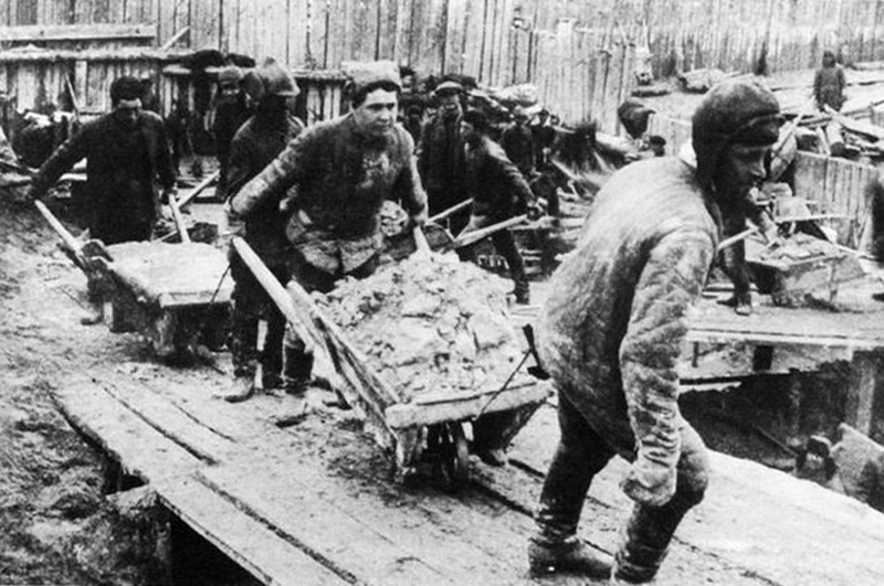 Заключенные Волголага на строительстве ГЭС. Фото: Яркипедия, Узнай Россию