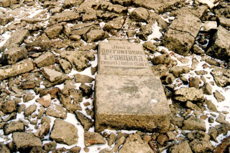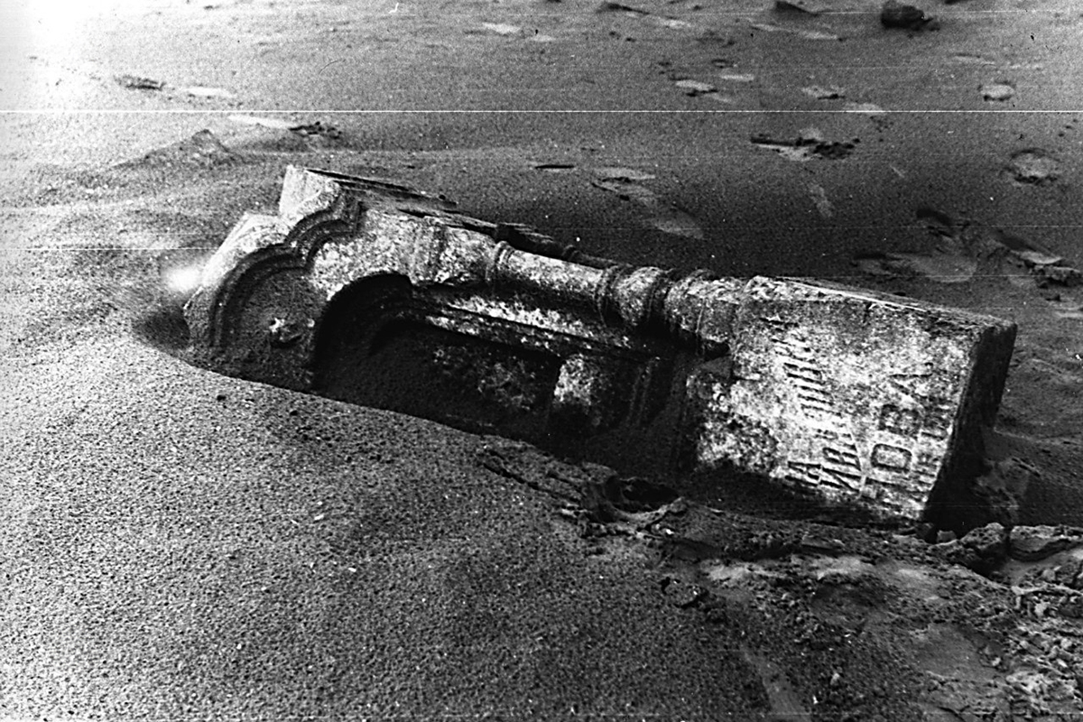 Надгробия, оставшиеся на месте мологского кладбища к 1996 году. Фото: Музей Мологского края