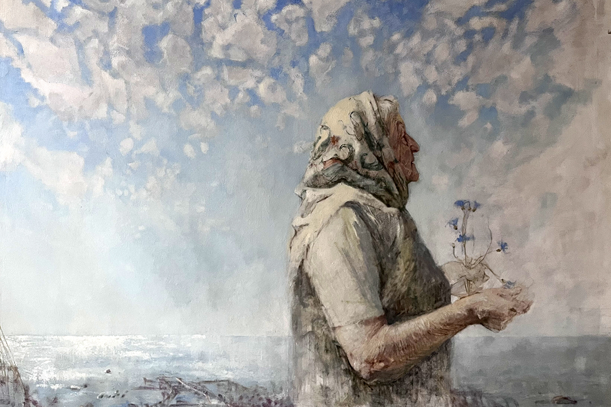 На стене в комнате нашей собеседницы — ее портрет. Тамара Николаевна на самом деле не носит платки, этот деревенский наряд – фантазия художницы. И все же картина висит над ее кроватью. Пожилая женщина на ней глядит на бескрайнюю воду Рыбинского моря, в руках ее васильки.