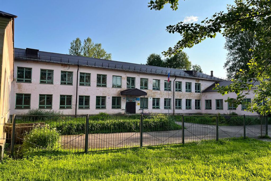 Рядом колонка с грязной водой, бытовка и здание с облупившейся краской и двумя линиями забора — Трубичинская школа. Елена Тулина проработала в этой школе 44 года (общий стаж преподавания — 48 лет). Черноволосая, короткостриженная учительница русского языка и литературы указывает на обшарпанное здание: «Нам сюда». В школе всего несколько пластиковых окон, нет учебников по большинству предметов, а часть детей, которые там учатся, попали в Трубичино, потому что из городских школ их выгнали. Но детей для небольшой сельской школы так много, что она работает в две смены. Зарплата Елены Тулиной 50 тысяч рублей в месяц. В эту сумму входят доплаты за классное руководство и за стаж.