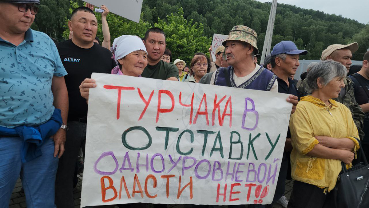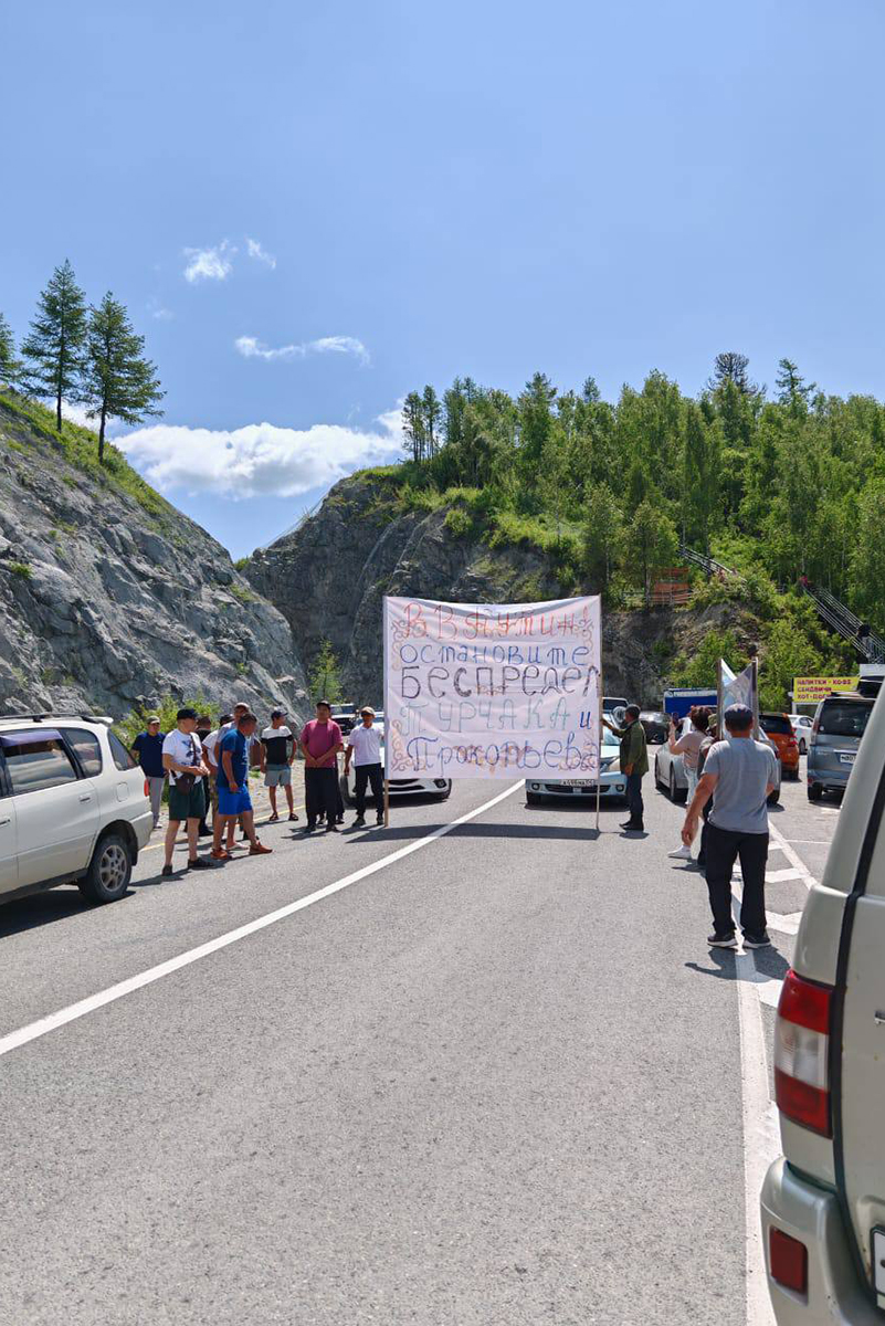 Фамилия главы правительства появилась на протестных плакатах за неделю до согласованного митинга: 12 июня люди перекрыли трассу Чике-Таман в Онгудайском районе. На опубликованных в сети кадрах видно, что в акции приняли участие полтора десятка человек.