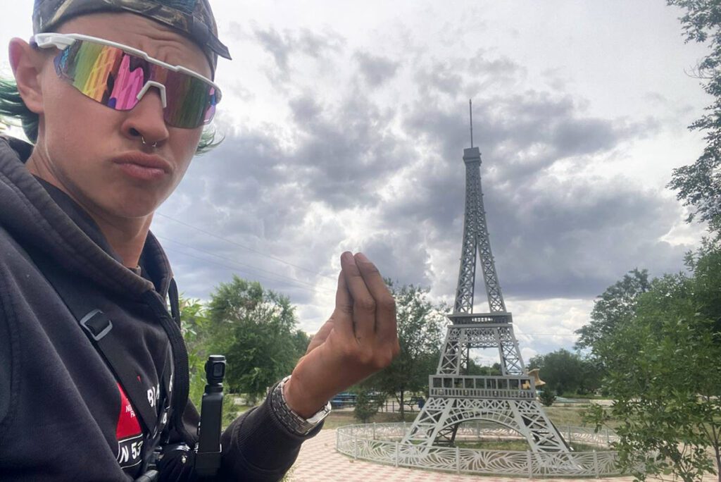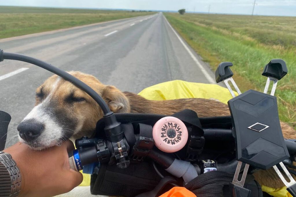Известность к нему пришла неожиданно — когда он подобрал бездомную собаку в Казахстане. Видео с собакой, которую он назвал Колбаска, едущей на сумке велосипеда, завирусилось в соцсетях. «Региональный аспект» поговорил с ним, когда он находился на трассе.