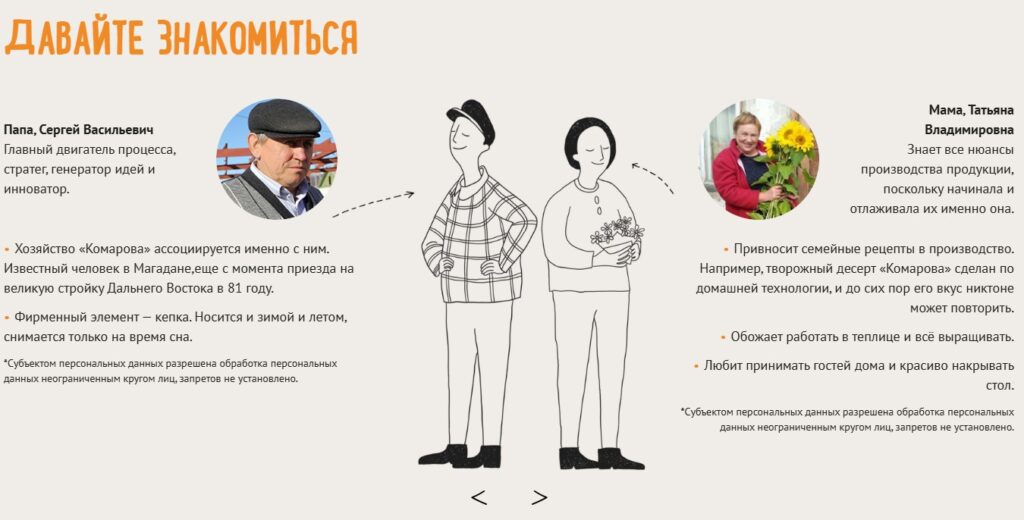 Бренд «Комарова» — общее дело семьи. Хозяйство — в ведении отца семейства и старшего сына Сергея Сергеевича, который отвечает за технические процессы и, как говорят, «знает всё о движимой сельхозтехнике». Жена Татьяна начинала вместе с мужем, ей известны все нюансы производства, она — автор рецептов ряда продуктов, которые производит хозяйство. Дочь Анастасия помогает с административной работой.