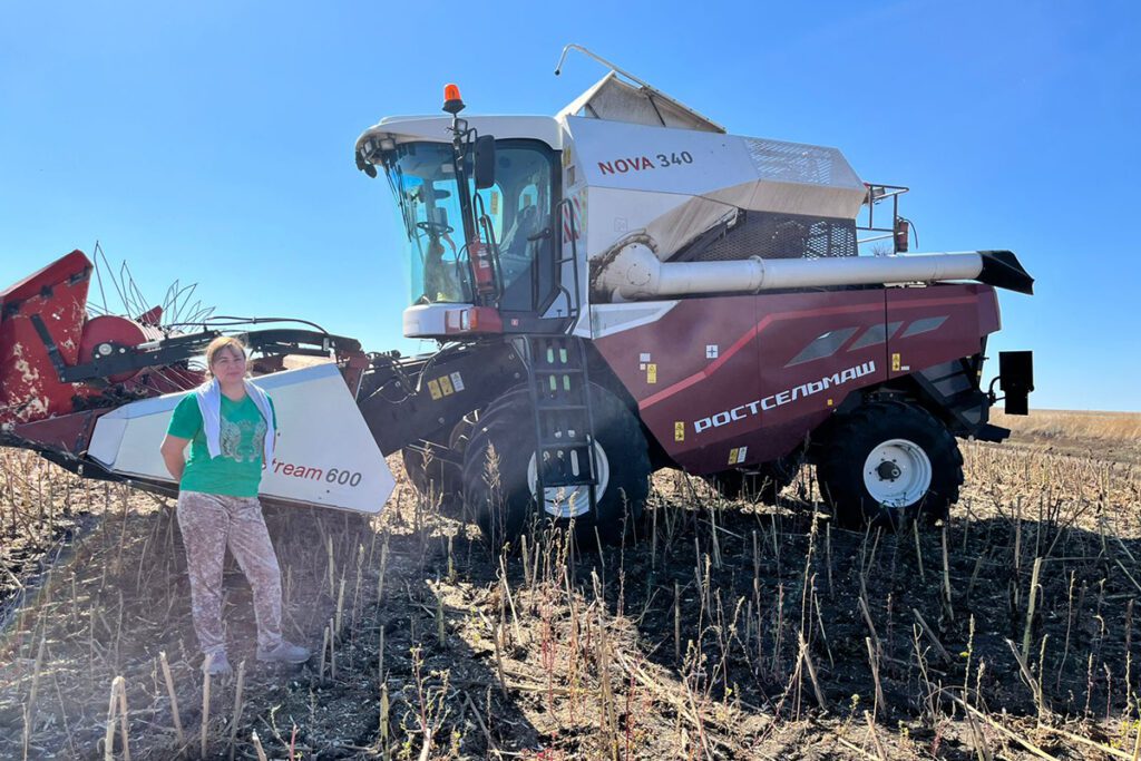 Конечно, фермерство на 100% не женское дело. Это очень тяжёлый труд. Бывают ситуации, когда, например, во время уборки что-то сломалось, там, ремень порвался. Его надо поменять — всё раскрутить, а оно горячее, под 200 градусов нагревается.