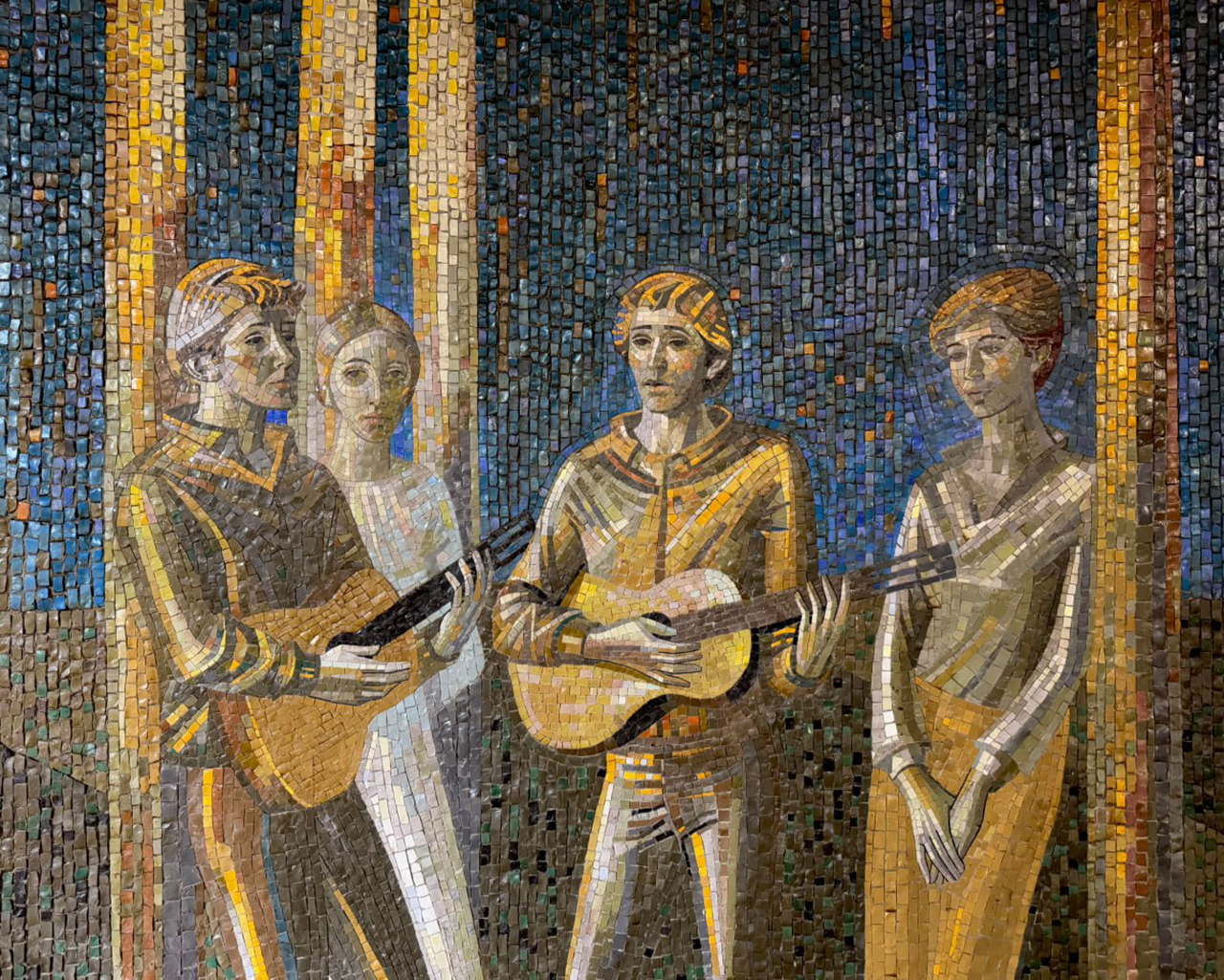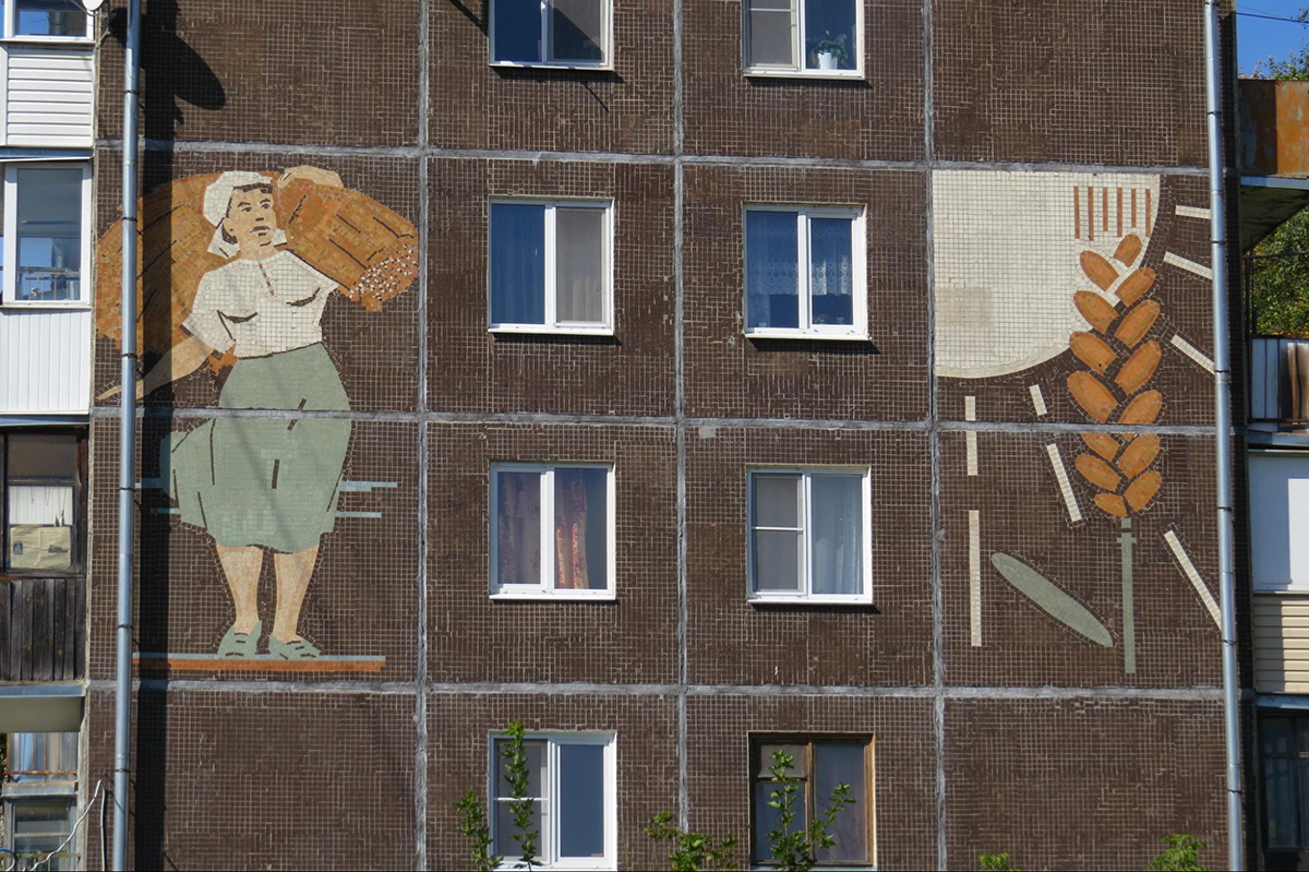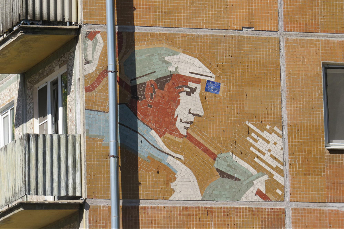 Например, в Пскове Дмитрия привлекли не только шедевры белокаменной архитектуры, но и мозаики с рабочим и колхозницей на панельках. Фото Дмитрия Сасина