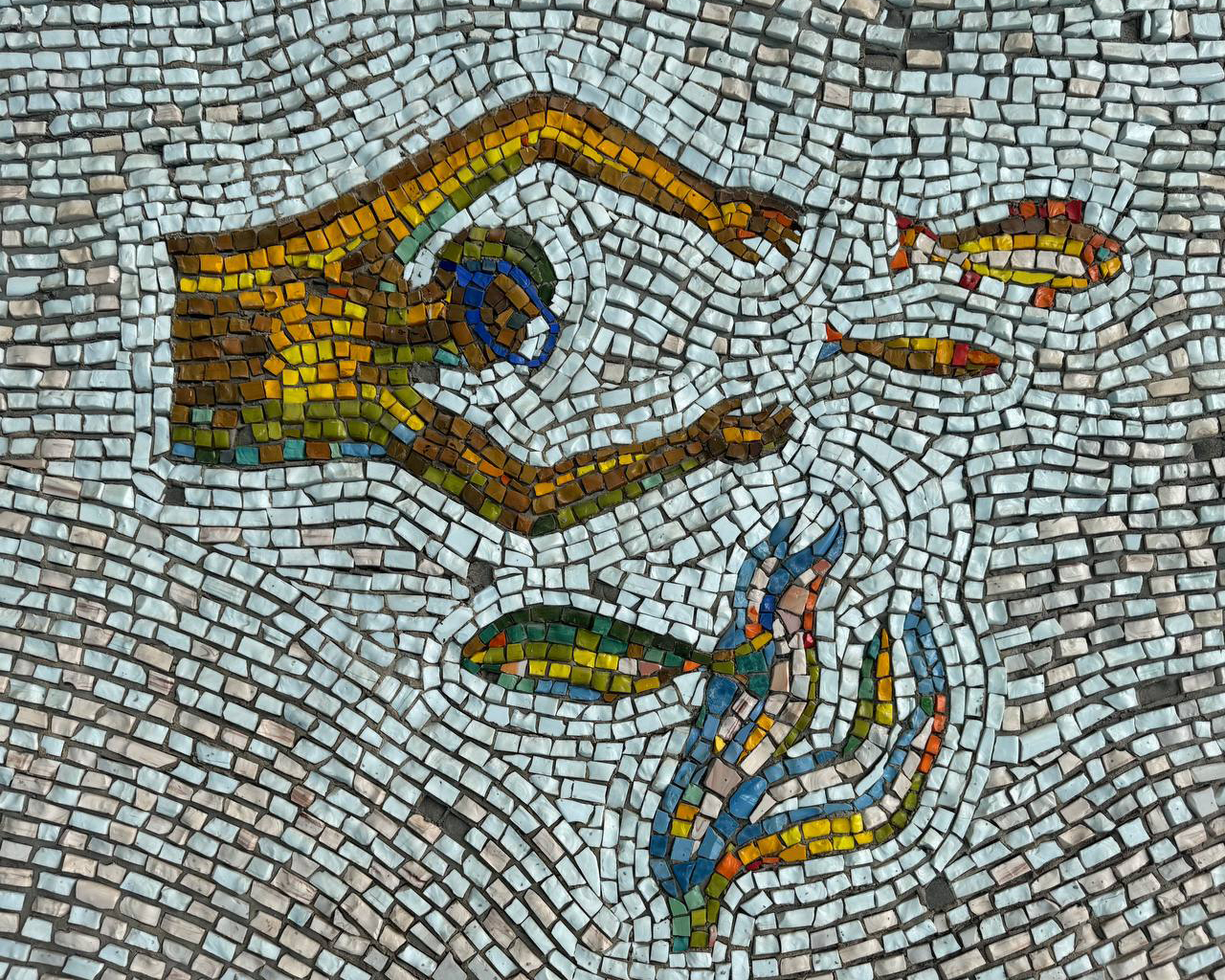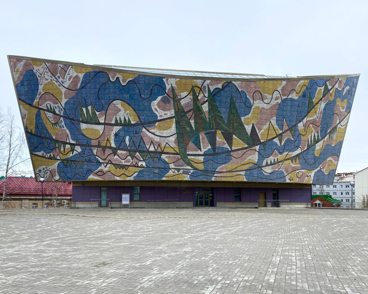 Мозаики из коллекции Валерия: фойе ДК Энергетиков в Усть-Илимске Иркутской области, фасад галереи-мастерской Геннадия Райшева в Ханты-Мансийске и бассейн «Локомотив» в Узловой Тульской области. Фото Валерия Долженко