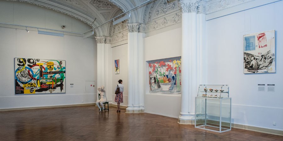 Что важно знать. Экспозиция была составлена в 1990-х годах благодаря пожертвованиям Русскому музею от немецких меценатов Петера и Ирене Людвиг. В ней представлены образцы искусства второй половины XX века, в том числе работы Энди Уорхола и Роберта Раушенберга.
