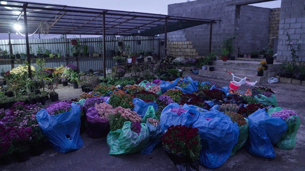 Дом на отшибе, отделенный от Агачаула автомобильной трассой. Детский велосипед, оставленный под дождем, незаконченная пристройка, теплица с цветами — хозяйка торгует ими, выйдя на пенсию. Кадками уставлен весь двор. От ветра хрупкие растения защищают синие целлофановые пакеты, шуршащие под падающими каплями.