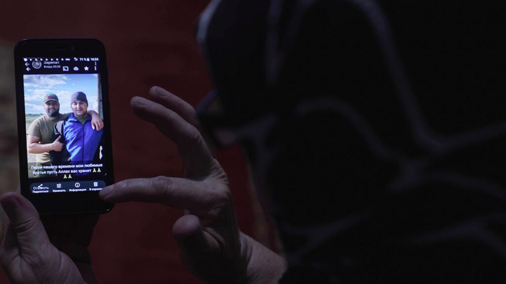 Жена Магомеда перебирает фотографии на телефоне — вот погибший сын Бозигит с автоматом охраняет какой-то объект, вот он встречается с братом на отдыхе в Мариуполе.